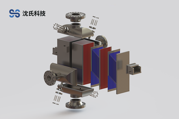 核聚变装置的稳态运行,需克服高温、高压、强腐蚀等极端环境,高效换热系统正是保障等离子体稳定约束、包层热态性能的核心环节。沈氏科技在微通道换热领域深耕十余年,自主研发的PCHE具备耐高压(最高达300MPa)、耐宽温(-196℃至1000℃)、换热效率较传统设备提升约30%、体积仅为传统设备1/6等优势,适用于聚变能源领域的严苛工况。